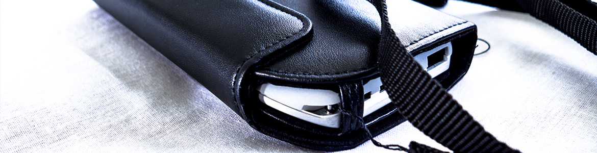 Um einen sauberen Rand zu erhalten, wird das Außenmaterial (hier Kunstleder) um eine feste Kante geklebt. Auf der Rückseite wird ein weiches textiles Material aufgebracht. Beide werden durch eine saubere Abschlussnaht miteinander verbunden.